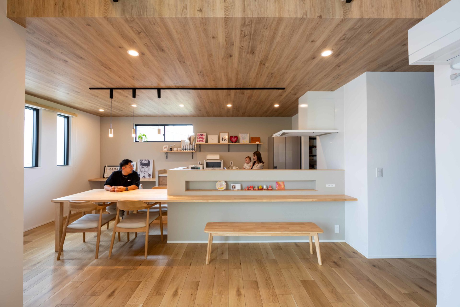 室内ではキッチンとダイニングを。これも過去のブログで触れていますが、見所はキッチンと一体型の、造作のカウンター&テーブルダイニングです。お気に入りのアイテムを飾るのが大好きな奥様のために、邸内には至るところにニッチや飾り棚が設けられています。他にもランドリールームや小上がりの畳コーナーもばっちり撮影させて頂きました。