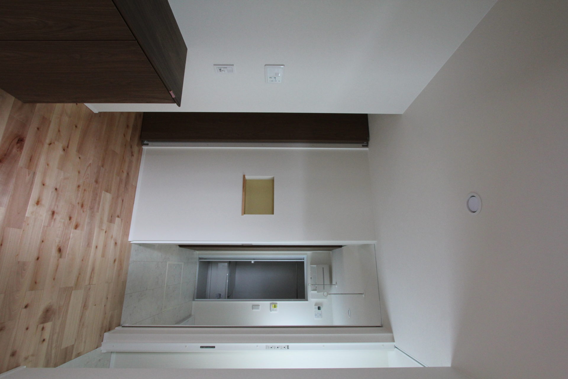 玄関を入ると、正面に洗面脱衣室が配置され、さらにその先にはキッチンへと続きます。仮に汚れて帰ってきたとしても、LDKを通ることなく浴室へ直行できる帰宅動線です。