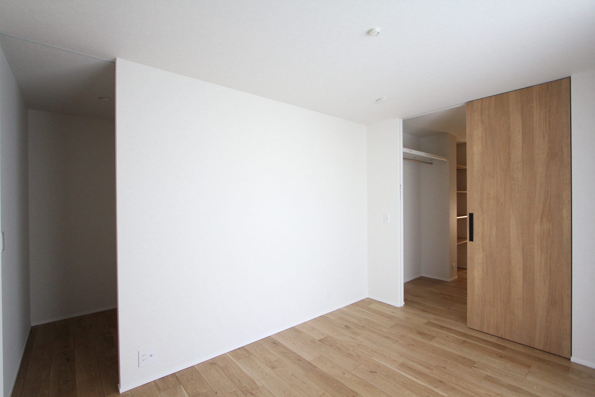 次はウォークスルークローゼットと、その先に続く主寝室。主寝室にはまた別のウォークインクローゼットが設けられており、収納量の豊富さが窺えます。