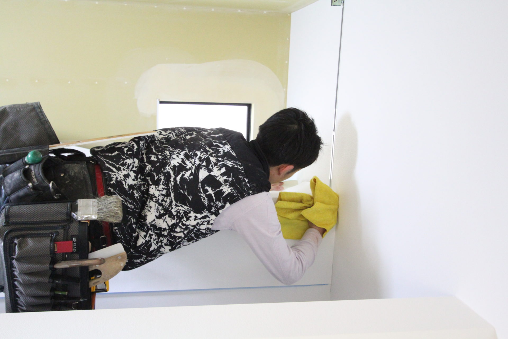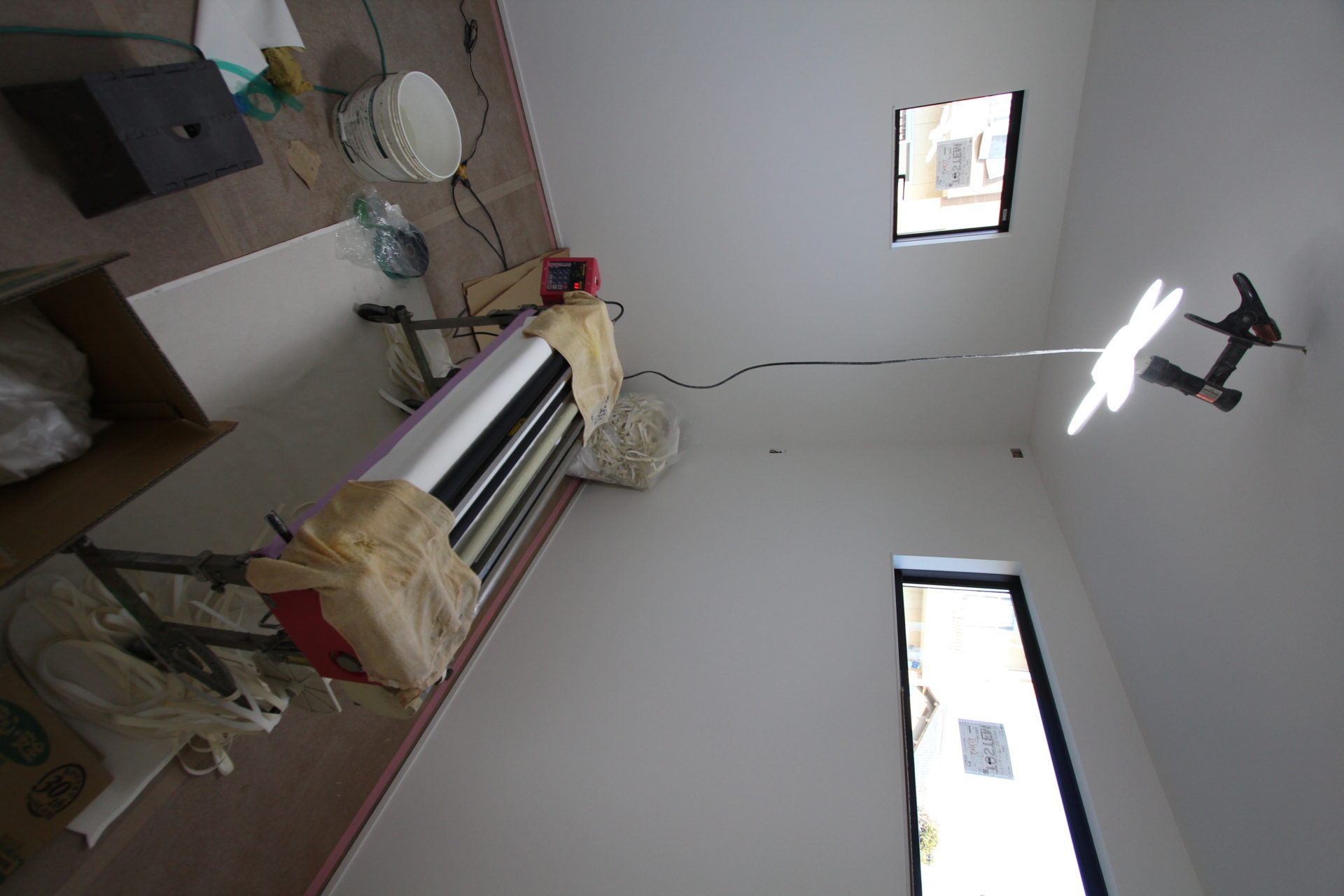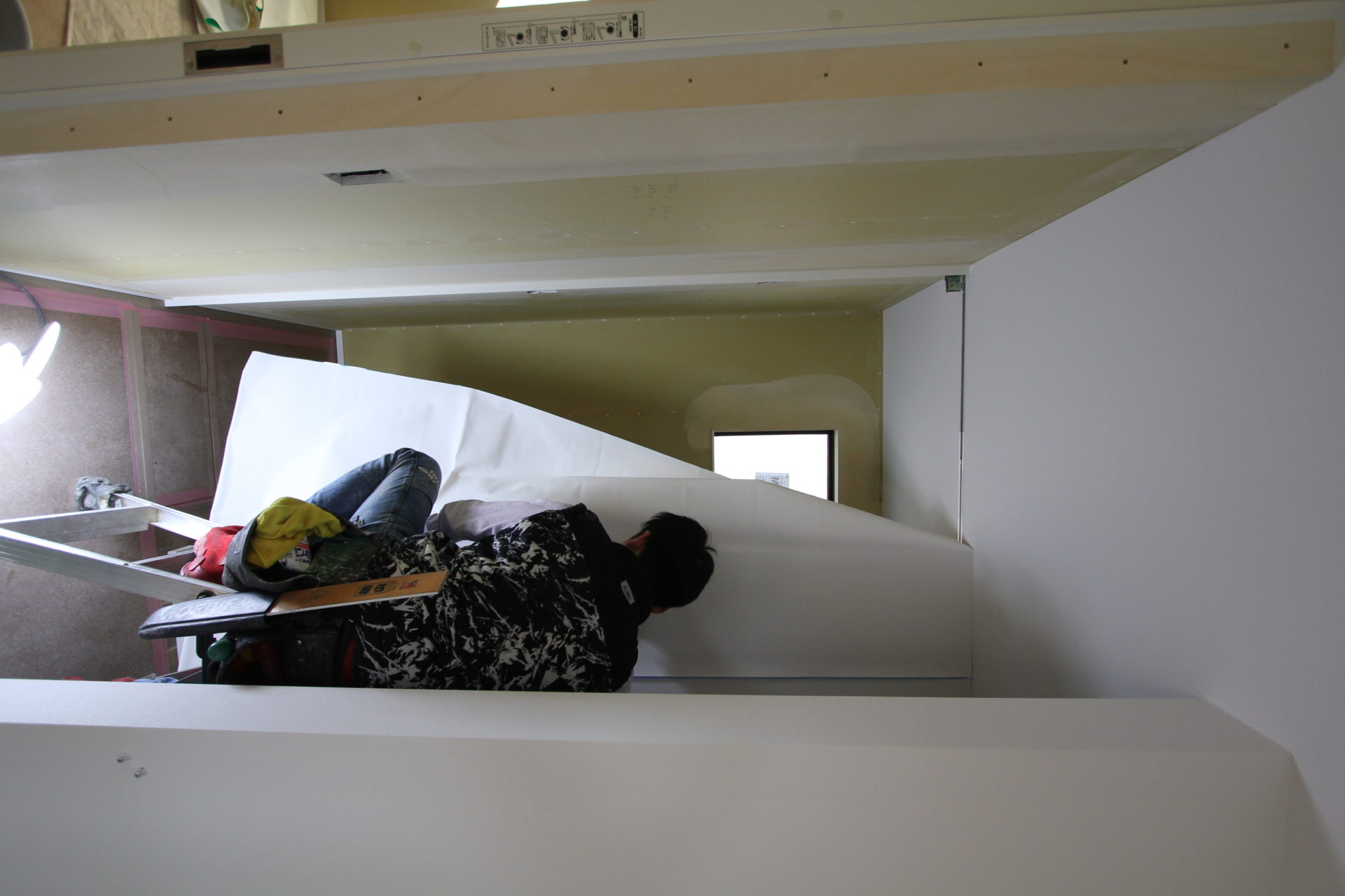 こちらはパテ処理を終え、壁紙工事を待つ子ども部屋。この後はエアコンや照明器具の取り付け→クリーニング・内部コーキングを経て、お引渡しとなります。