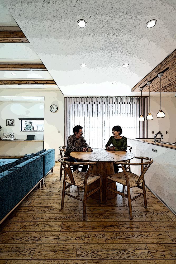マイホームさんは自由度が高いこともあり、特に間取りでは最後まで色々と悩み、後になって変更することも多かったのですが、いつも快く対応してくれて本当に感謝しかありません。武井社長が打合せ中に、私たちが伝えたイメージをその場で具現化してくれた手書きのイラストも分かりやすかったですね。また、マイホームさんは会社としての「縛り」が少なく断熱材や空調設備も希望のものを取り入れられるなど様々な施工実績を持っているので、もし途中で要望が変わったとしても安心して頼れますね。