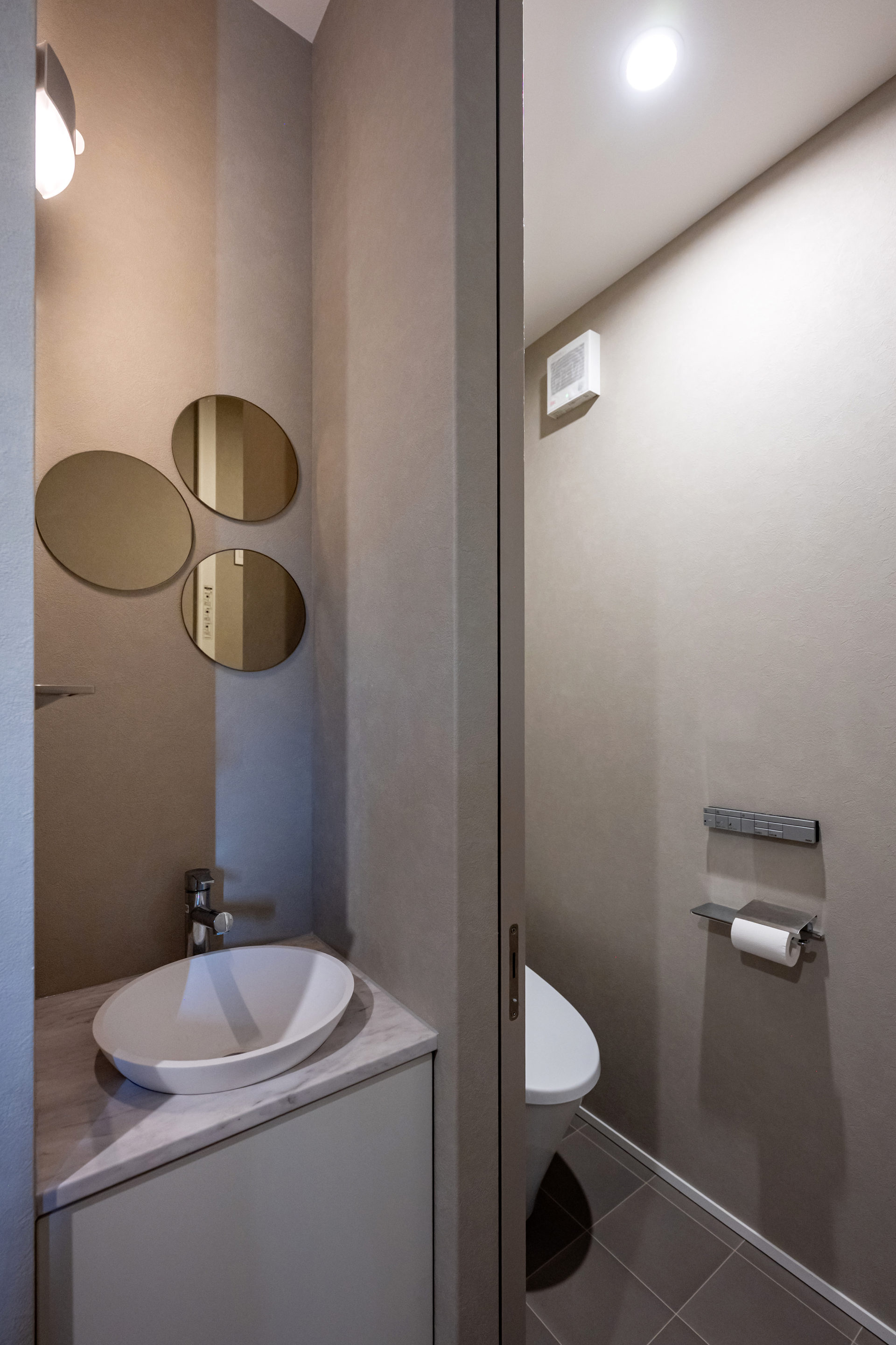 玄関ホールにはデッドスペースを活用した、帰宅時とトイレ後に手が洗えるセカンドシンクを完備しています。
